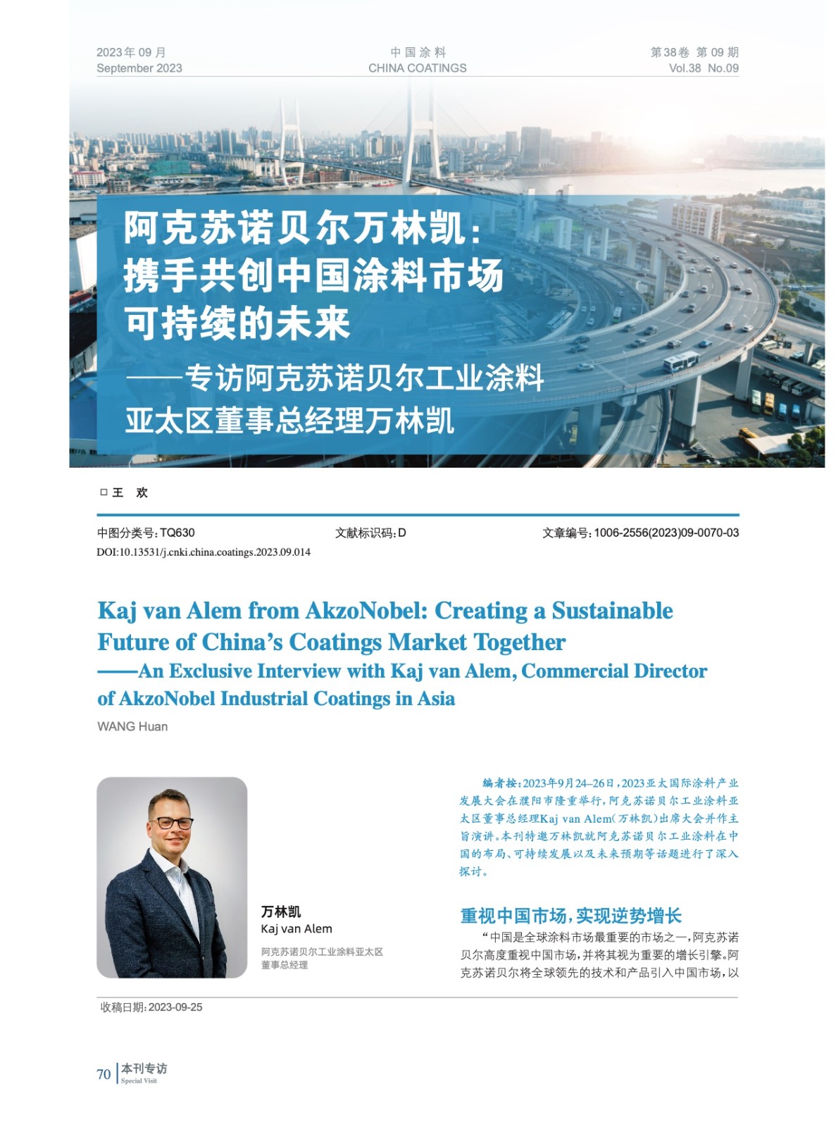 阿克蘇諾貝爾萬林凱:攜手共創中國涂料市場可持續的未來——專訪阿克蘇諾貝爾工業涂料亞太區董事總經理萬林凱