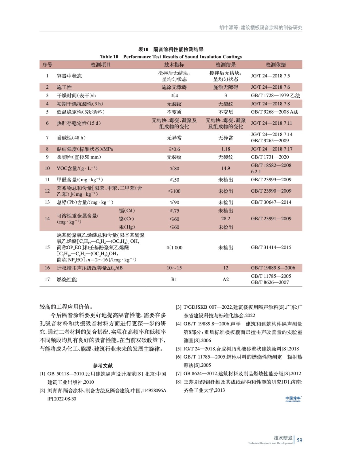 摘要:主要研究了一種新型建筑樓板隔音涂料的制備,包括材料選擇、制備工藝和性能測試。結果表明,采用該隔音涂料計權撞擊聲壓級改善量ΔLw=12 dB、燃燒性能達到A2級,環境友好性能符合GB 18582—2020內墻涂料要求。為建筑樓板隔音涂料的應用提供了理論依據和實際指導。