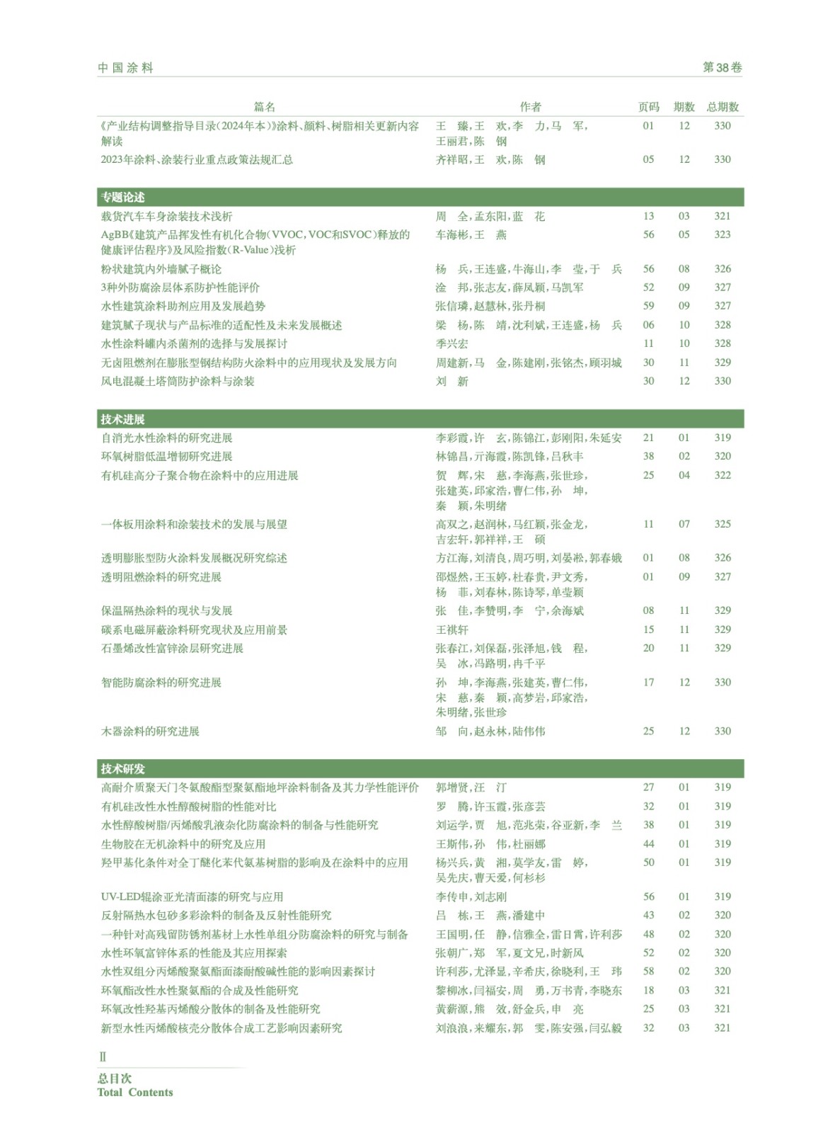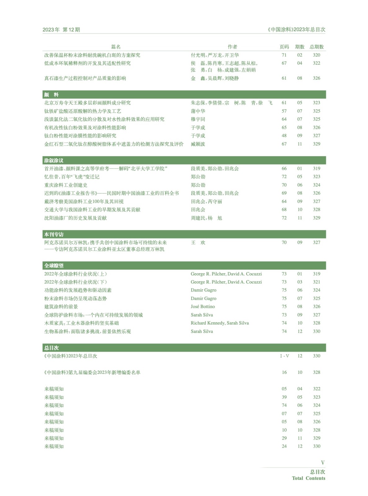 《中國(guó)涂料》2023年總目次