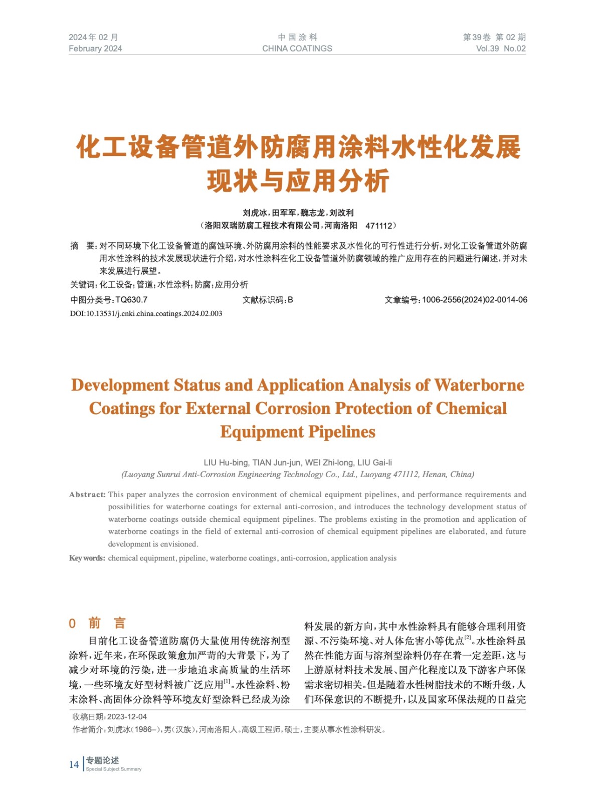 本文系作者@劉虎冰,田軍軍,魏志龍,劉改利 授權(quán)中國涂料網(wǎng)發(fā)表,并經(jīng)中國涂料網(wǎng)編輯,未經(jīng)允許不得轉(zhuǎn)載,如需轉(zhuǎn)載請聯(lián)系chinacoatingnet@vip.163.com