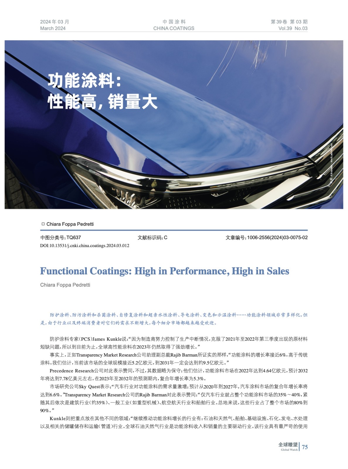 編者按:防護涂料、防污涂料和殺菌涂料、自修復涂料和超親水性涂料、導電涂料、變色和示溫涂料……功能涂料領域非常多樣化,但是,由于行業以及終端消費者對它們的需求不斷增大,每個細分市場都越來越受歡迎。