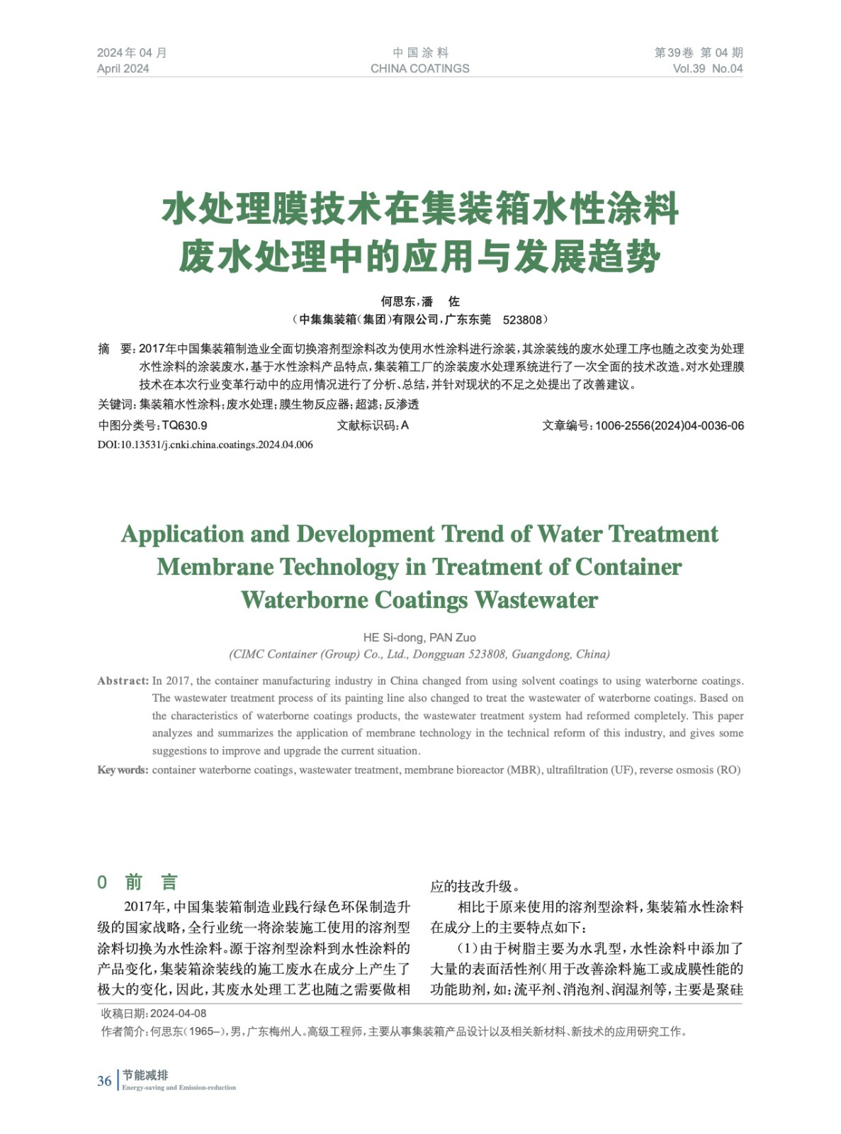 水處理膜技術(shù)在集裝箱水性涂料廢水處理中的應(yīng)用與發(fā)展趨勢