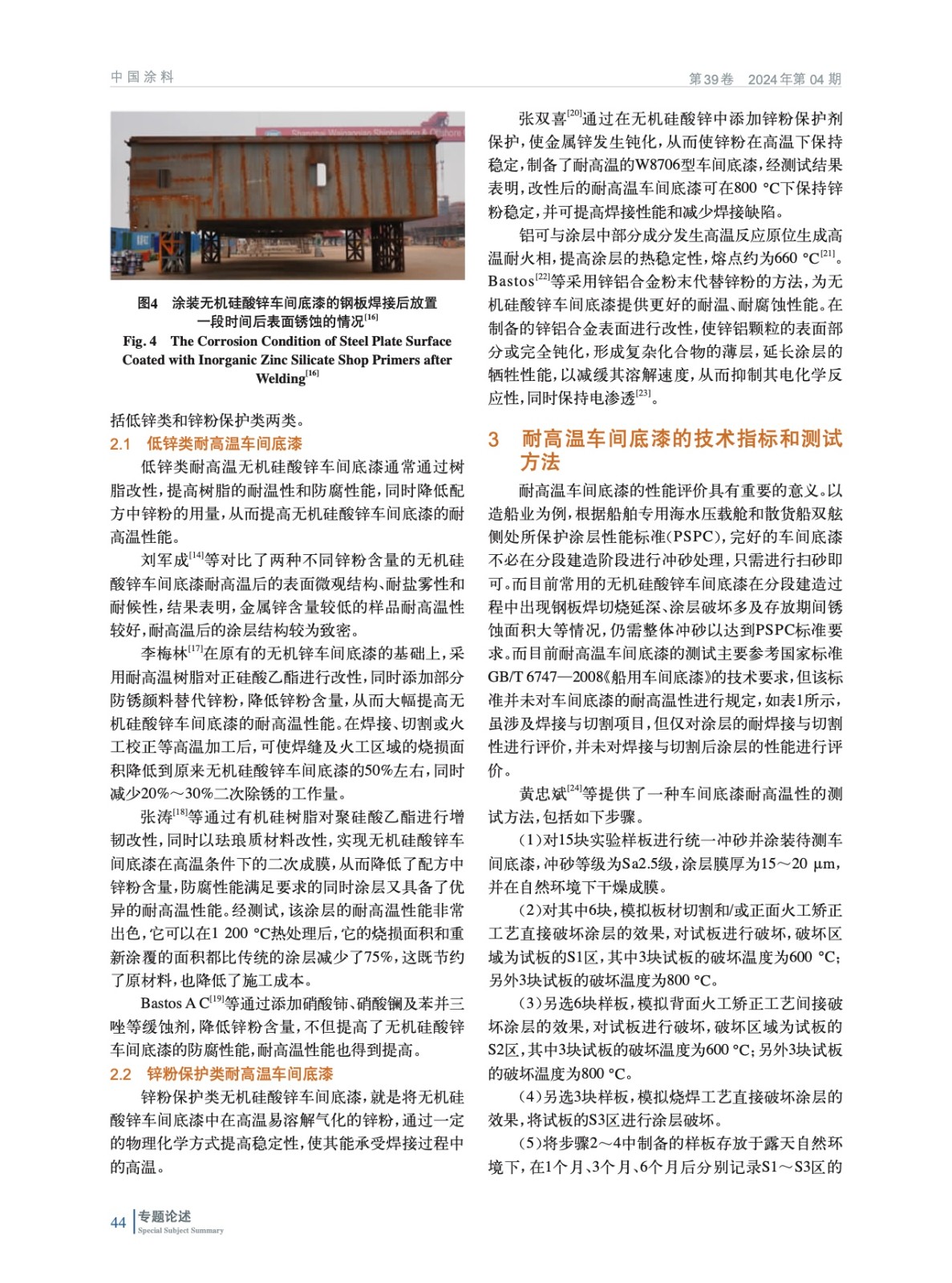 綜述了無機硅酸鋅車間底漆的高溫破壞原理、實現耐高溫車間底漆的主要技術途徑、性能指標和測試方法,并對耐高溫車間底漆未來的發展方向做出了展望。