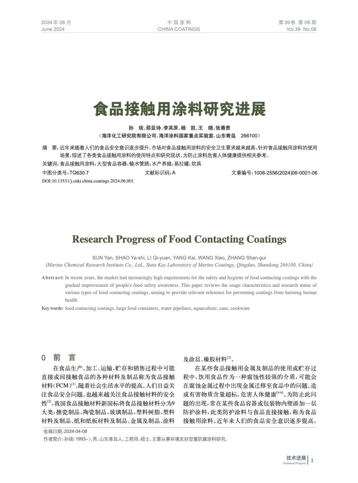本文系作者@孫 琰,邵亞詩,李其原,楊 凱,王 曉,張善貴 授權中國涂料網發(fā)表,并經中國涂料網編輯,未經允許不得轉載,如需轉載請聯(lián)系chinacoatingnet@vip.163.com