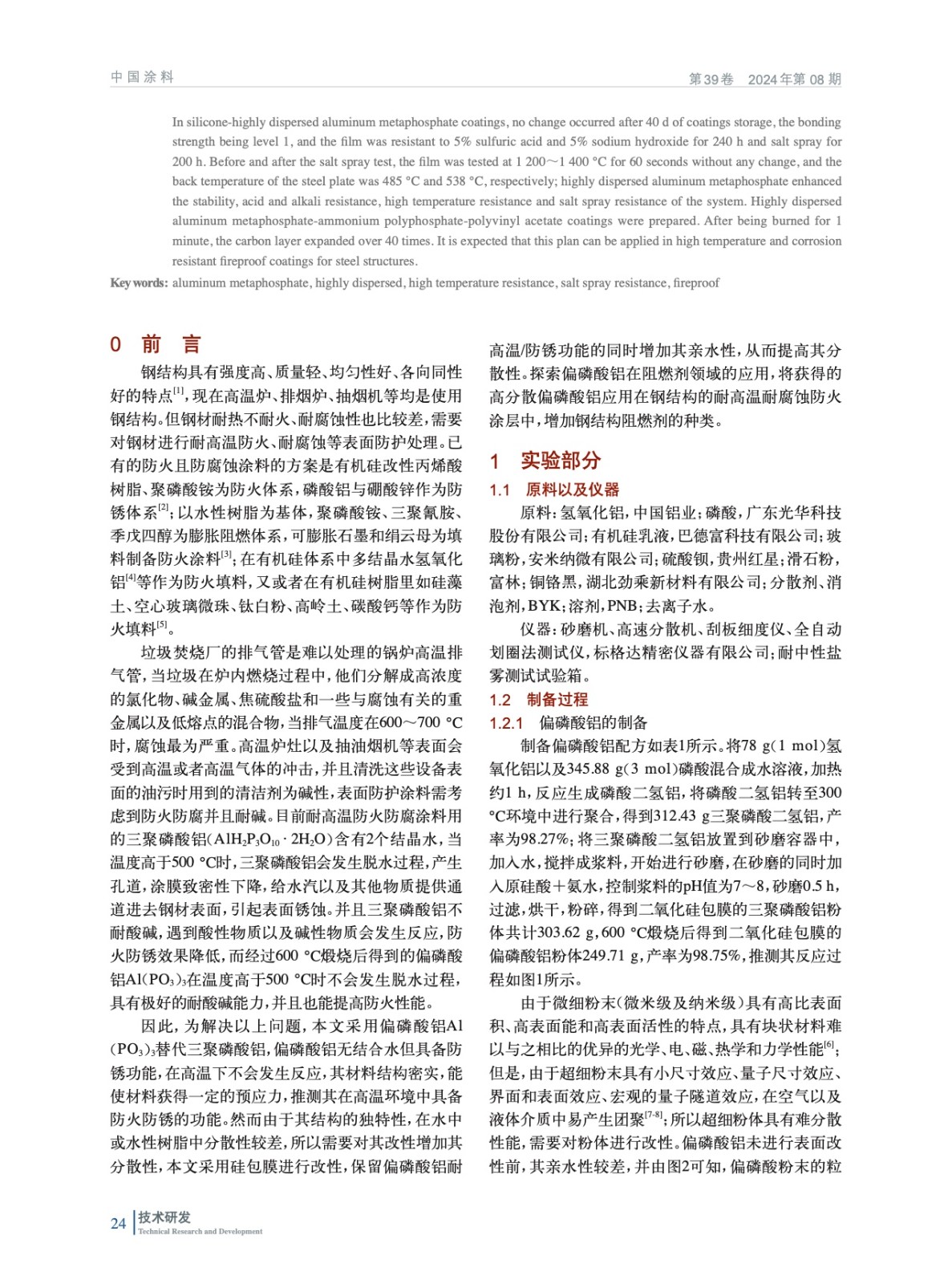 高分散偏磷酸鋁–耐高溫耐腐蝕防火涂層研究