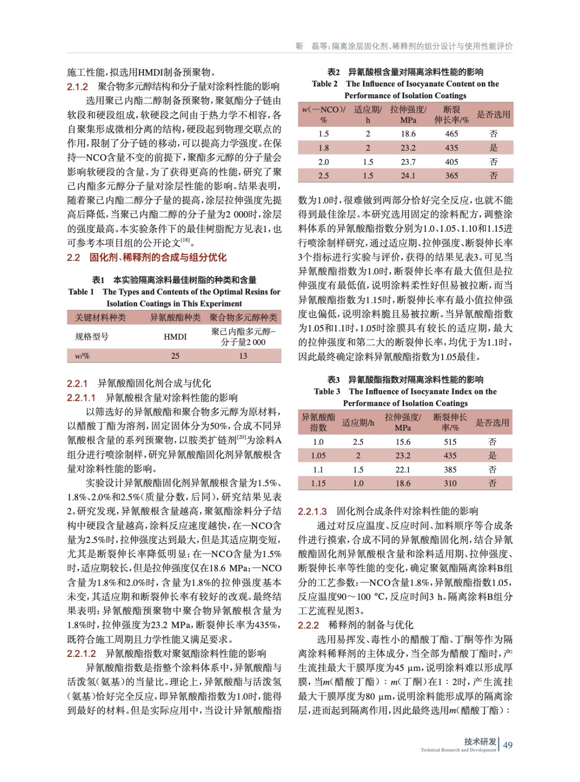 隔離涂層固化劑、稀釋劑的組分設計與使用性能評價