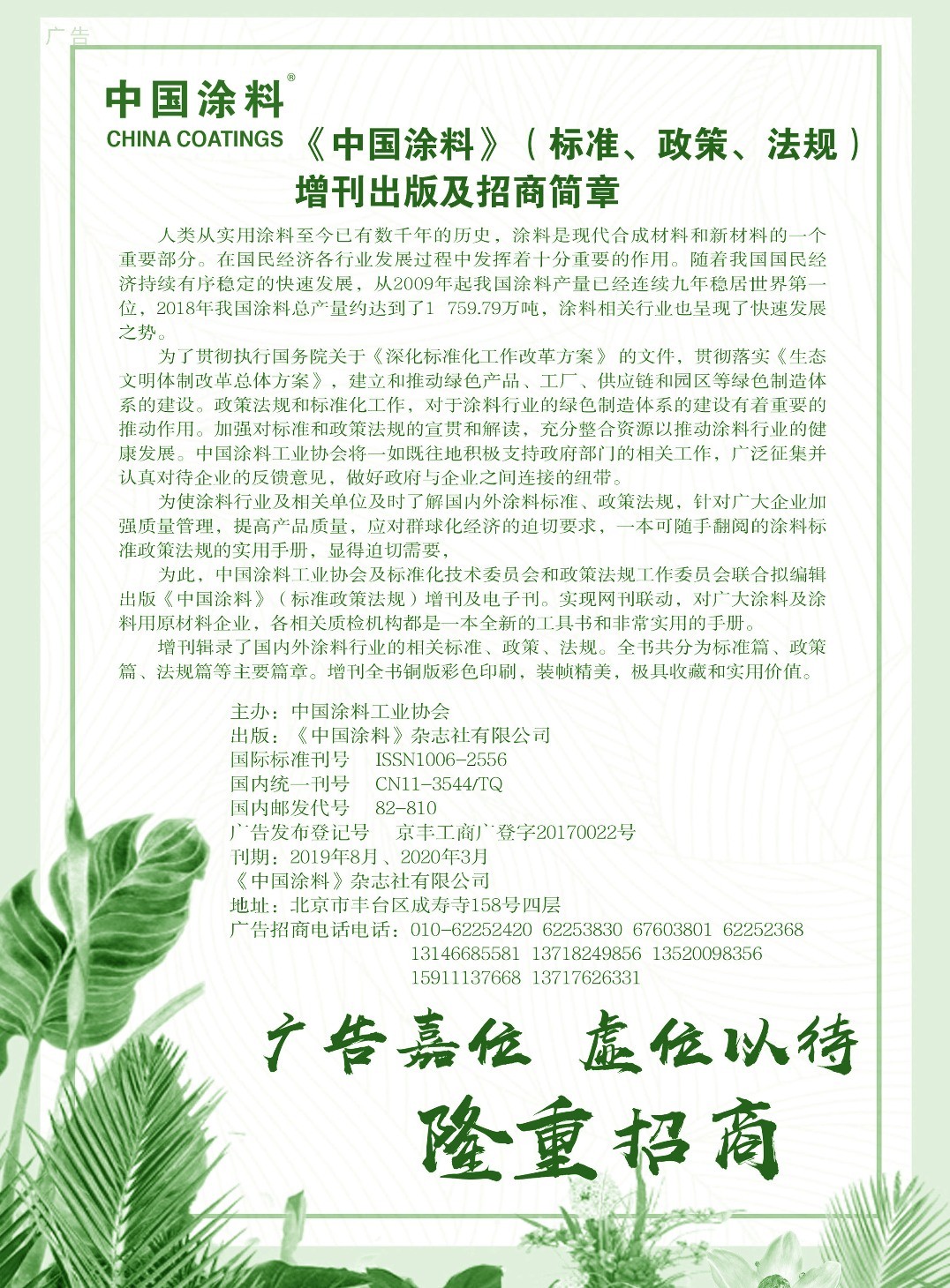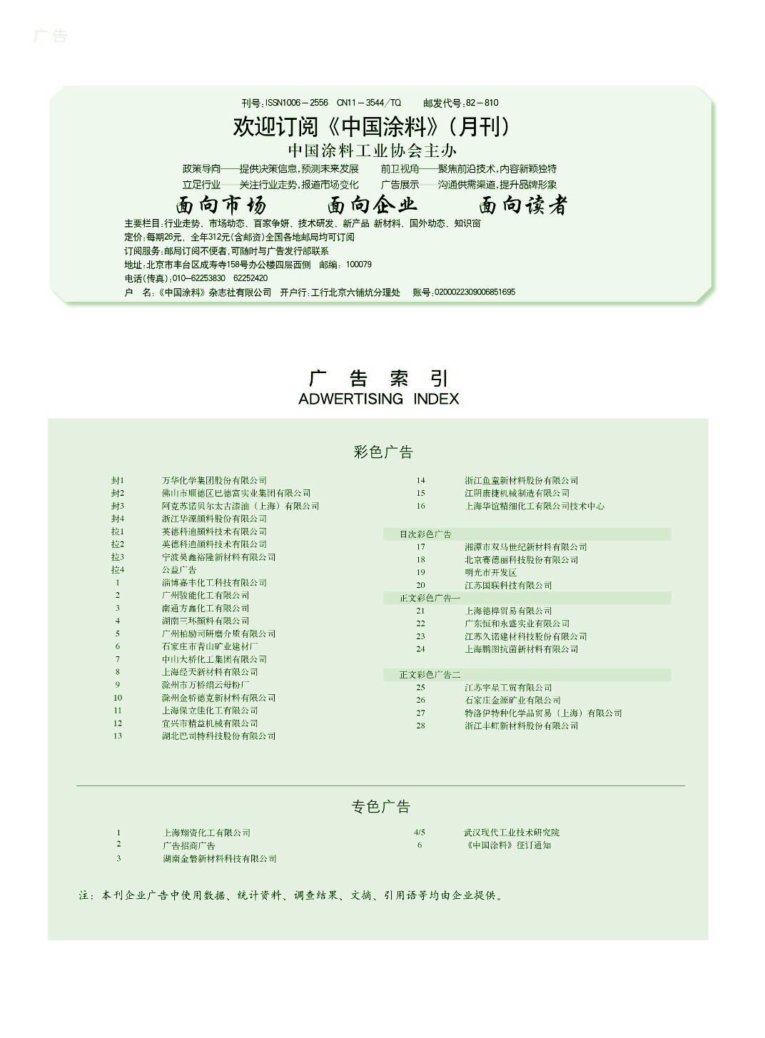 上海翔資、廣告招商、湖南金磐、武漢現(xiàn)代工業(yè)技術(shù)研究院、《中國(guó)涂料》征訂通知