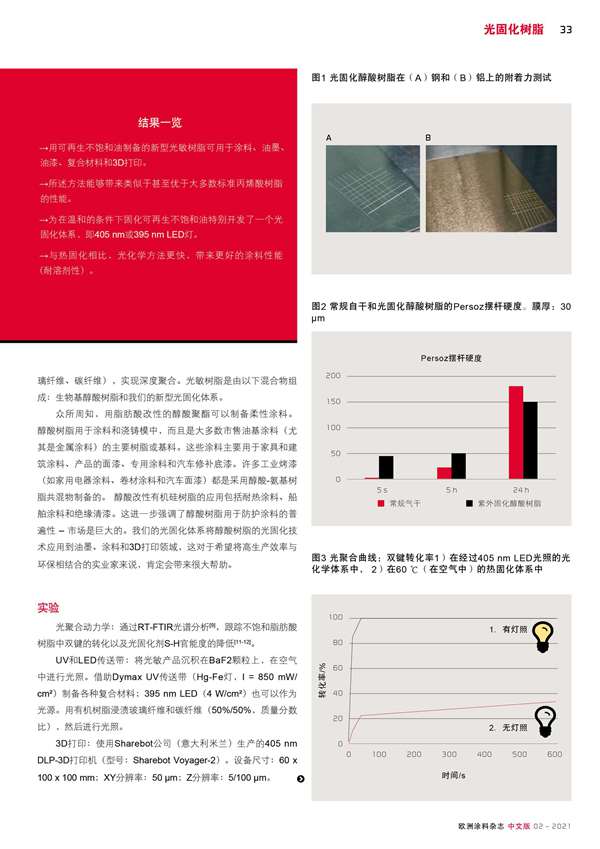醇酸樹脂的無金屬光聚合,可用于涂料、油墨、油漆、復合材料和3D打印