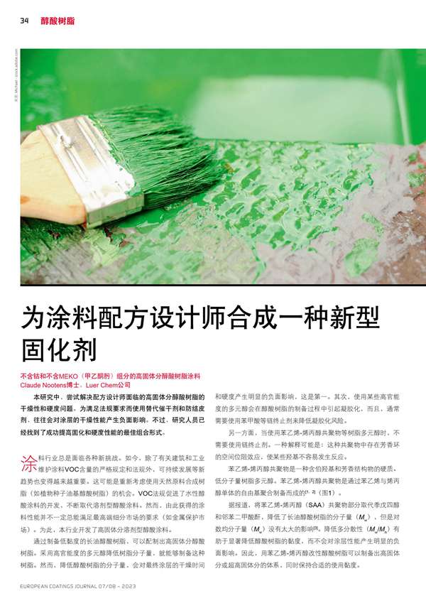 為涂料配方設(shè)計(jì)師合成一種新型固化劑
