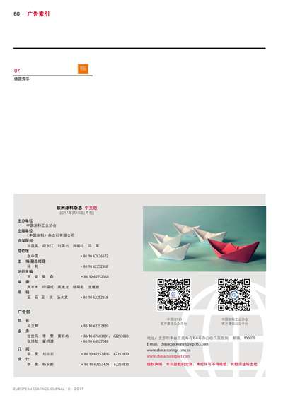 主辦:《中國涂料》雜志社有限公司 電話:010-62252368