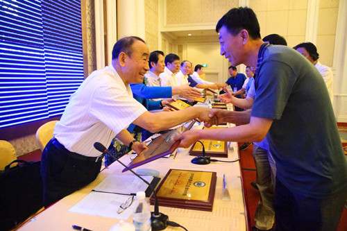 圖為李壽生為上榜企業(yè)頒發(fā)獎(jiǎng)牌