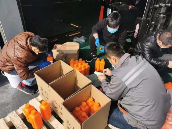 抗擊疫情期間,浙江納美新材料股份公司黨支部組織安吉黨員將公司實(shí)驗(yàn)室?guī)齑娴木凭♂尦?5%的消毒酒精,積極支援機(jī)關(guān)單位消毒抗疫。