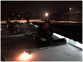 荊門東方雨虹在短短幾個小時內(nèi)將施工人員、防水材料、施工設備協(xié)調(diào)齊全到位并火速進入施工現(xiàn)場,連夜奮戰(zhàn),僅用一個晚上,保質(zhì)保量完成施工任務。