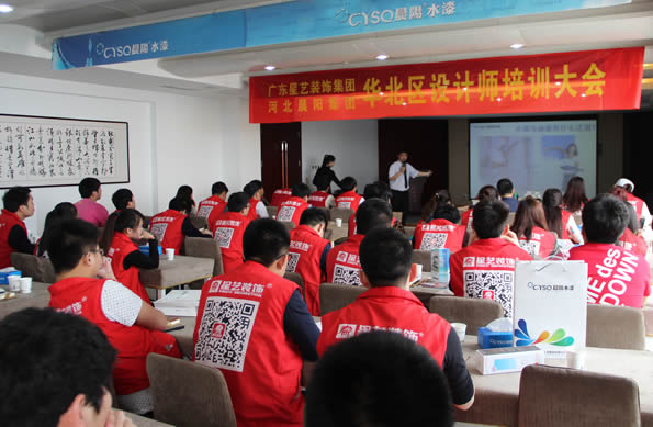 在隨后舉行的培訓(xùn)會(huì)上,晨陽(yáng)水漆黨委書(shū)記、常務(wù)副總裁劉占川與星藝裝飾集團(tuán)的設(shè)計(jì)師們進(jìn)行了詳細(xì)的溝通交流并致歡迎詞。培訓(xùn)部技術(shù)講師范凱對(duì)天然凈味防霉、竹炭、荷葉及木器漆等產(chǎn)品進(jìn)行了講解。