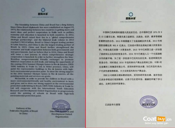 據悉,晨陽水漆還將聯合國際教研組織,采用環保水漆對巴西各學校進行粉刷,讓孩子們在更環保、健康的環境下學習成長,支持巴西的環保事業。