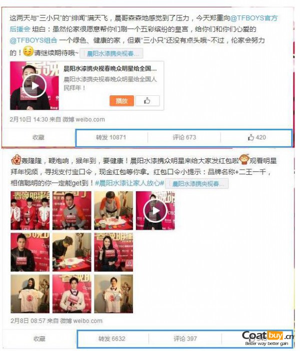 春節(jié)期間,晨陽水漆贊助鳳凰娛樂春晚明星會客廳,得到眾多網(wǎng)民的參與和評價,助推自身品牌在微博平臺內(nèi)的影響力得到迅速增長,成為春晚借勢營銷大贏家。