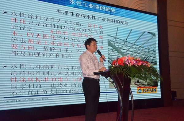 上海涂料染料協會秘書長張水鶴先生在致歡迎詞中也表示,推進水性工業(yè)涂料發(fā)展,有助于新《環(huán)保法》的執(zhí)行,有助于推進涂料行業(yè)VOC治理,將大大有助于環(huán)境的整治,大大有助于大氣整治十條的貫徹。
