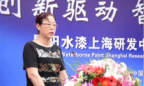 中國涂料工業(yè)協(xié)會(huì)會(huì)長孫蓮英在晨陽水漆上海研發(fā)中心揭牌儀式上致辭