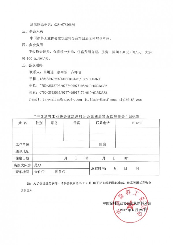 關于召開中國涂料工業協會建筑涂料分會第四屆第五次理事會的通知