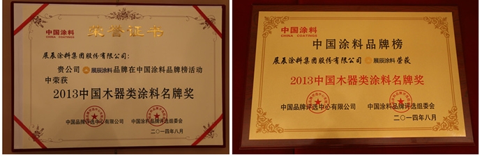 展辰涂料榮獲“2013中國木器類涂料名牌獎(jiǎng)”