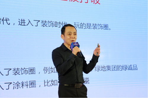 接著,涂贏天下創始人賢東以《涂料在裝飾界的發展趨勢》為主題,做系統化新商業模式的探尋嘗試,以賦予經銷商動銷之能。