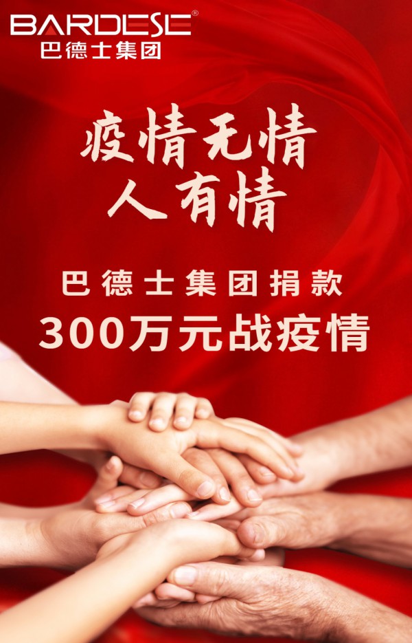 當(dāng)前,疫情防控正處于關(guān)鍵時(shí)期!沐浴民族精神與光輝而成長(zhǎng)壯大的巴德士集團(tuán)時(shí)刻心系疫情。2月1日,巴德士集團(tuán)率7大全資子公司聯(lián)動(dòng)獻(xiàn)愛(ài)心:廣東巴德士、廣東花王、上海巴德士、山東巴德士、成都巴德士、江西巴德士、贛州博士家居共同捐贈(zèng)300萬(wàn)元戰(zhàn)疫情,捐款已分別匯入廣東中山、廣東開(kāi)平、上海金山、山東章丘、四川大邑、江西贛州、江西南康7地紅十字會(huì),為疫情防控送去一份力所能及的支援,為頑強(qiáng)與病毒抗?fàn)幍囊邊^(qū)兄弟姐妹們送去一份鼓舞,向祖國(guó)盡一份民族企業(yè)的責(zé)任與擔(dān)當(dāng)。