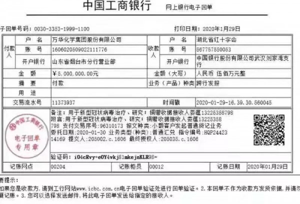 1)向湖北紅十字會(huì)捐款現(xiàn)金500萬(wàn)元人民幣,用于新型冠狀病毒治療研究,醫(yī)療、防護(hù)設(shè)施購(gòu)置,保障醫(yī)護(hù)人員安全和病人救治。