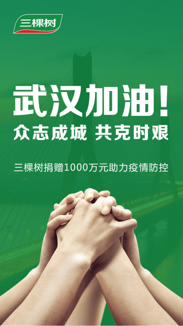 天災(zāi)無(wú)情人有情,三棵樹(shù)將時(shí)刻關(guān)注疫情情況,積極承擔(dān)企業(yè)社會(huì)責(zé)任和弘揚(yáng)大愛(ài)精神,還將通過(guò)匯聚企業(yè)、合作伙伴、員工等各方力量共同抗擊疫情,為在前線抗擊疫情的廣大醫(yī)務(wù)工作者提供更多力所能及的幫助。