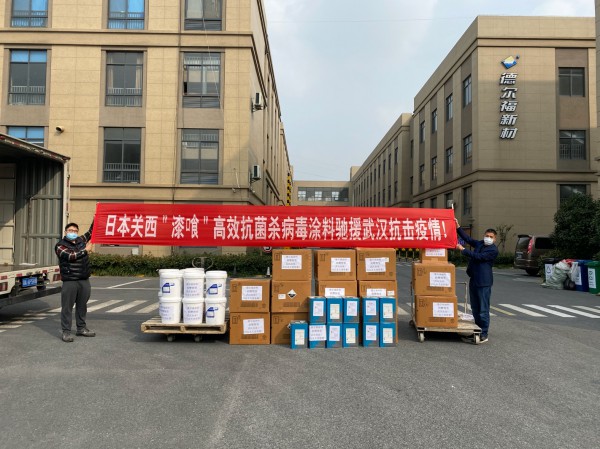 作為日本關西涂料中國地區經銷商的浙江德爾福涂料有限公司,公司領導層沒有半分遲疑,立馬于日本關西涂料召開緊急電話會議,并宣布由浙江德爾福涂料、日本關西涂料和武漢寶政關西共同聯合捐贈的價值30萬元的關西"漆喰"高效抗菌殺病毒涂料和德爾福抗菌涂料,馳援武漢以抗擊新型冠狀病毒,改善定點醫院的醫療環境!
