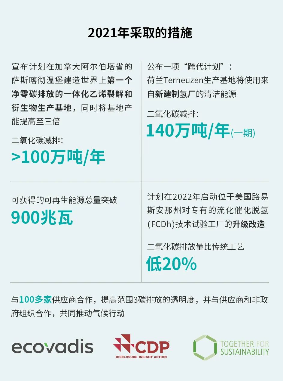 2021年度《Intersections》ESG報告包括依據(jù)全球報告倡議組織(GRI)標(biāo)準(zhǔn)進(jìn)行的相關(guān)批露,這些標(biāo)準(zhǔn)包括:綜合選項(xiàng)和《溫室氣體(GHG)核算體系》。除GRI和GHG之外,該報告還反映了與氣候變化相關(guān)財務(wù)信息披露工作組(TCFD)、可持續(xù)會計(jì)準(zhǔn)則委員會(SASB)和世界經(jīng)濟(jì)論壇(WEF)利益相關(guān)者資本運(yùn)行指標(biāo)一致的披露。陶氏公司聘請了德勤會計(jì)師事務(wù)所對公司管理層根據(jù)GRI之綜合選項(xiàng)下的可持續(xù)發(fā)展報告標(biāo)準(zhǔn)而編制和呈報的、截至2021年12月31日年度的披露結(jié)果、以及根據(jù)《溫室氣體核算體系》之公司標(biāo)準(zhǔn)的公司會計(jì)和報告標(biāo)準(zhǔn)而編制和呈報的、截至2021年12月31日年度的、關(guān)于范圍1和范圍2排放的披露結(jié)果進(jìn)行審核。