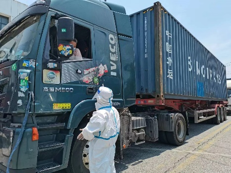 在方案的執行中,同事們也走出自己的工作范圍,參與到整個運輸的流程,疏通遇到的“瓶頸”。從找供應商,到根據政策要求找到合適的車輛和司機,與全球業務服務部及工廠相關同事群策群力,準備相關材料辦理手續、敲章,接車輛和司機、給貨車貼封條,帶司機去指定地點消殺、去倉庫裝卸貨物,再護送司機離開出發地等。