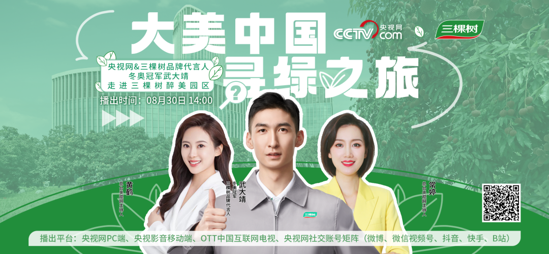 八月的暑熱還在繼續,是時候享受一場徹底的綠意啦~三棵樹品牌代言人、冬奧冠軍武大靖,央視網主持人常婷、黃鶴現身三棵樹,在8月30日14:00開啟一場尋綠之旅,在三棵樹醉美園區中,探尋綠色涂料的奧秘。
