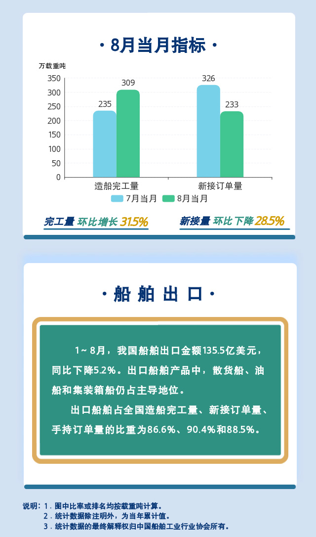一圖讀懂:2022年1~8月船舶統(tǒng)計數(shù)據(jù)