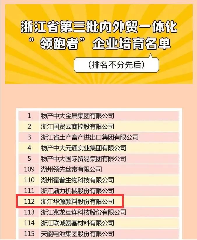 榮譽(yù)|華源顏料入選浙江省第三批內(nèi)外貿(mào)一體化“領(lǐng)跑者”企業(yè)培育名單