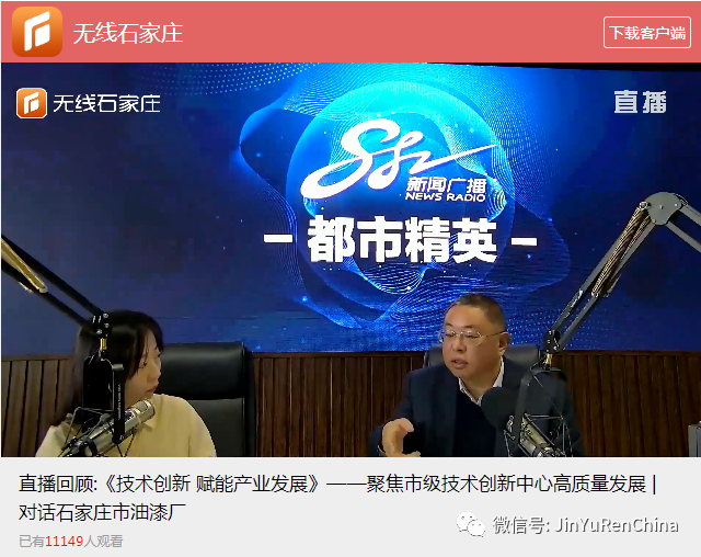 10月11日,【石家莊新聞廣播882】科技企業(yè)系列專訪《技術(shù)創(chuàng)新 賦能產(chǎn)業(yè)發(fā)展》欄目,特邀石家莊市油漆廠(“金魚漆”)董事長(zhǎng)焦亞平先生,走進(jìn)直播間——對(duì)話石家莊市油漆廠,聚焦石家莊市水性工業(yè)涂料技術(shù)創(chuàng)新中心高質(zhì)量發(fā)展。