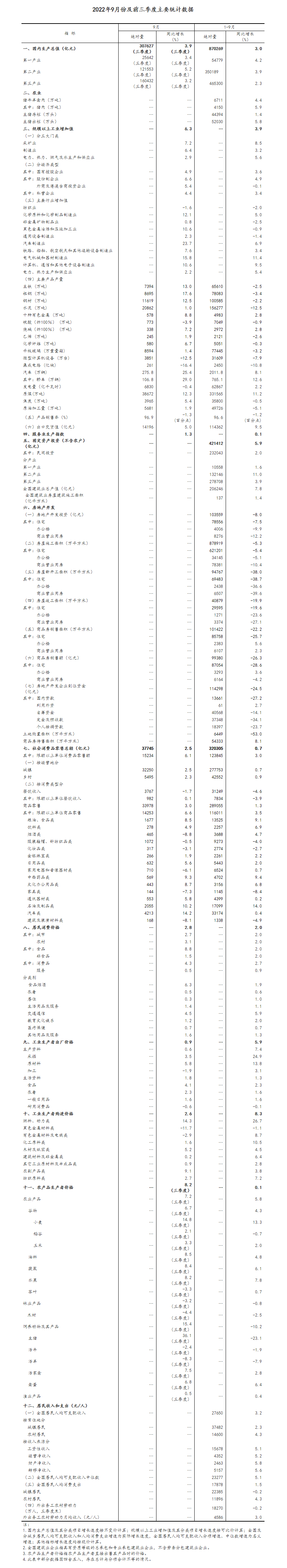 前三季度國民經濟恢復向好(2022年10月24日)國家統計局