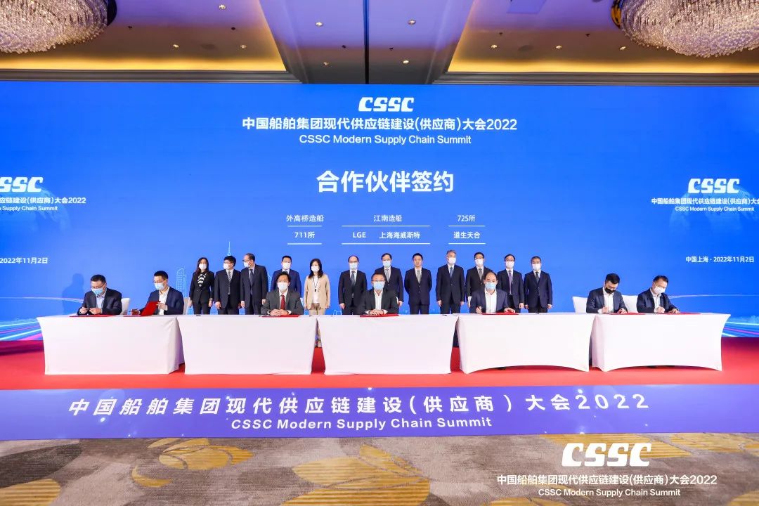 11月2日,中國船舶集團有限公司2022現代供應鏈建設(供應商)大會在上海舉行。本次大會再傳喜訊,七二五所及所屬青島雙瑞、雙瑞風電、雙瑞精鑄榮獲四項金牌供應商稱號。會上,在集團公司黨組副書記、總經理楊金成,黨組成員、副總經理盛紀綱等領導共同見證下,七二五所所長王其紅代表七二五所與上海道生天合簽訂合作伙伴協議。副所長徐健受邀參會。