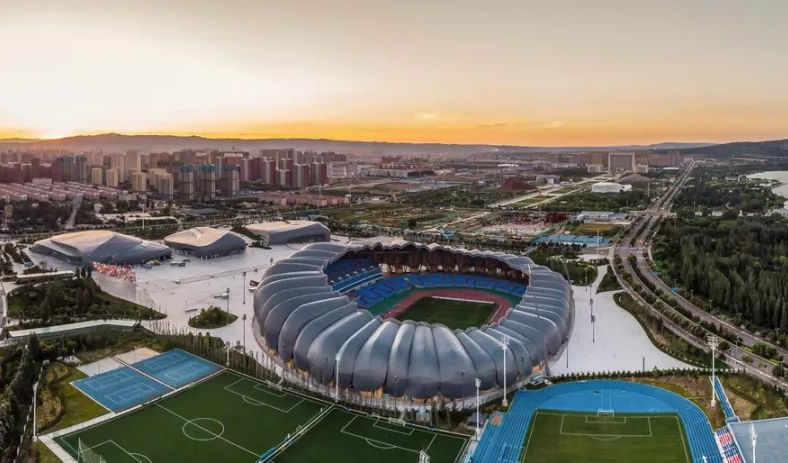西安奧體中心是第十四屆全運(yùn)會(huì)的主場(chǎng)館,由主體育場(chǎng)、體育館和游泳跳水館組成的,可提供高標(biāo)準(zhǔn)的專(zhuān)業(yè)比賽和演出場(chǎng)所,并為國(guó)內(nèi)、國(guó)際賽事配備專(zhuān)業(yè)的田賽、競(jìng)賽、足球訓(xùn)練場(chǎng)和室內(nèi)綜合訓(xùn)練館。整個(gè)奧體中心以“絲路啟航 盛世之花”為主題設(shè)計(jì)。其中,體育場(chǎng)別名“長(zhǎng)安花”,包含6萬(wàn)個(gè)座位,起伏的屋面和立面構(gòu)成舒展的體量和豐富的光影,啟發(fā)關(guān)于絲路的無(wú)限想象。