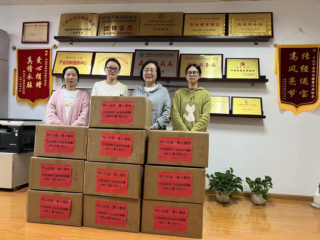 近日,寧波市涂料與涂裝行業(yè)協(xié)會(huì)收到中國(guó)涂料工業(yè)協(xié)會(huì)捐贈(zèng)的KN95口罩3000只,助力寧波疫情防控工作,以實(shí)際行動(dòng)踐行社會(huì)團(tuán)體的責(zé)任與擔(dān)當(dāng),彰顯同心抗疫、共克時(shí)艱的涂料人精神。