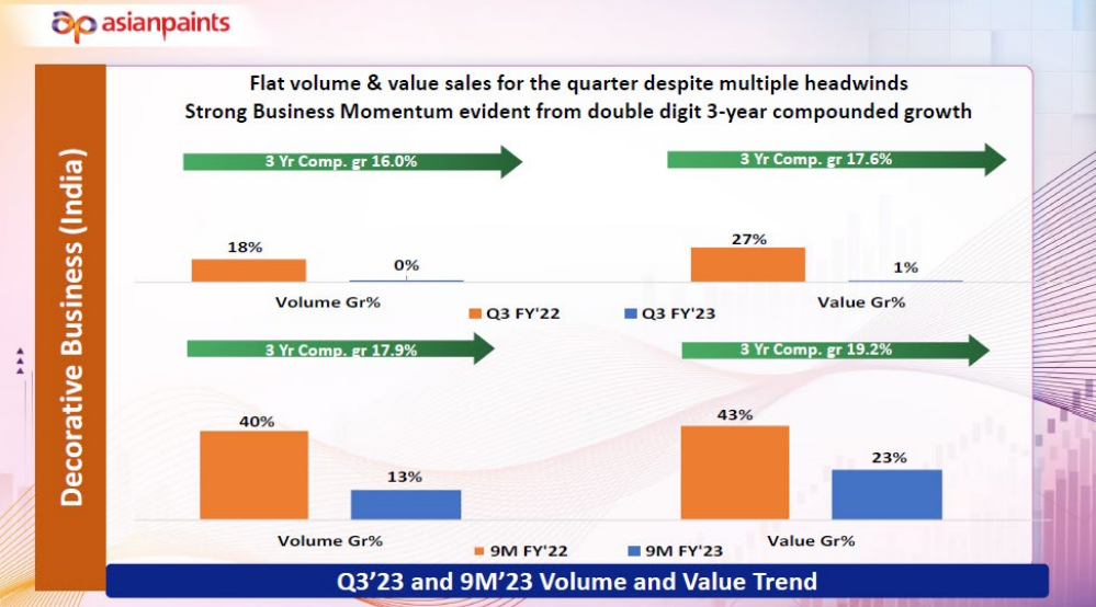 1月19日,印度涂料制造商亞洲涂料(Asian Paints)發布2023財年(2022年4月1日-2023年3月31日)Q3業績報告。