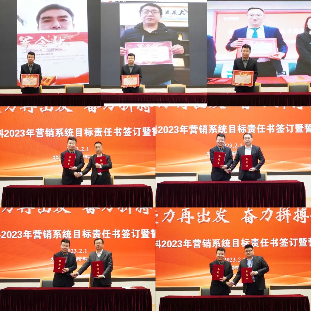2月1日,北新涂料2023年營銷系統目標責任書簽訂儀式暨誓師大會在北京未來科學城北新建材總部舉行。北新涂料領導班子成員,龍牌涂料、燈塔涂料營銷系統全體成員以及總部職能部門負責人通過現場+視頻的形式參加了會議。
