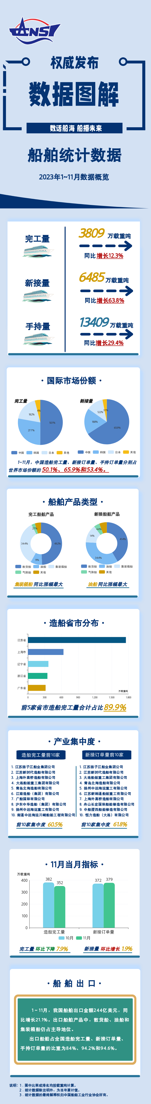 船舶|一圖讀懂2023年1 ~ 11月船舶統計數據