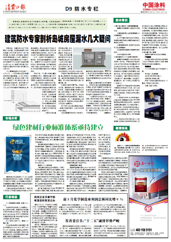 中國涂料報 2014年7月10日 星期四