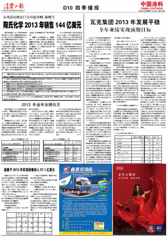 中國(guó)涂料報(bào) 2014年2月27日 星期四
