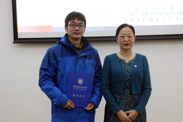 總結報告后,學員代表發(fā)言,班長陸威的發(fā)言題目是“為涂料知識而來,為責任而去”,談了班上學員組成和總的學習情況,通過學習均得到不同程度提高,同學間能團結互助,結下了較深厚友誼,今后要把學到的知識用到工作中去。學員湯佳發(fā)言題目是“感想和總結”,她認為培訓班學習應用基礎理論很有必要,她在完成兩篇涂料配方設計作業(yè)的過程中,重新認識了真石漆和水性汽車漆,從成膜機理,到各個成分在涂料成膜過程中所起的作用及添加量,有了新的認識。要設計出滿足客戶要求的涂料配方,就需要我們有相當強的理論知識,通過分析和試驗才能研發(fā)出來,這就是我們要學習涂料專業(yè)基礎課程的原因。溫紹國教授在培訓班授課受到學員們歡迎和稱贊,他作為教師代表在會上作了熱情的發(fā)言。